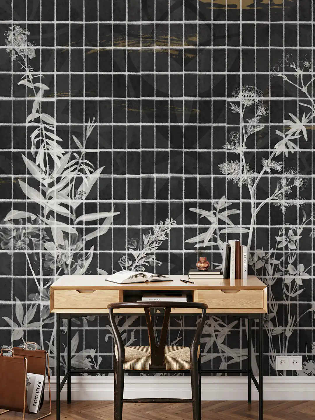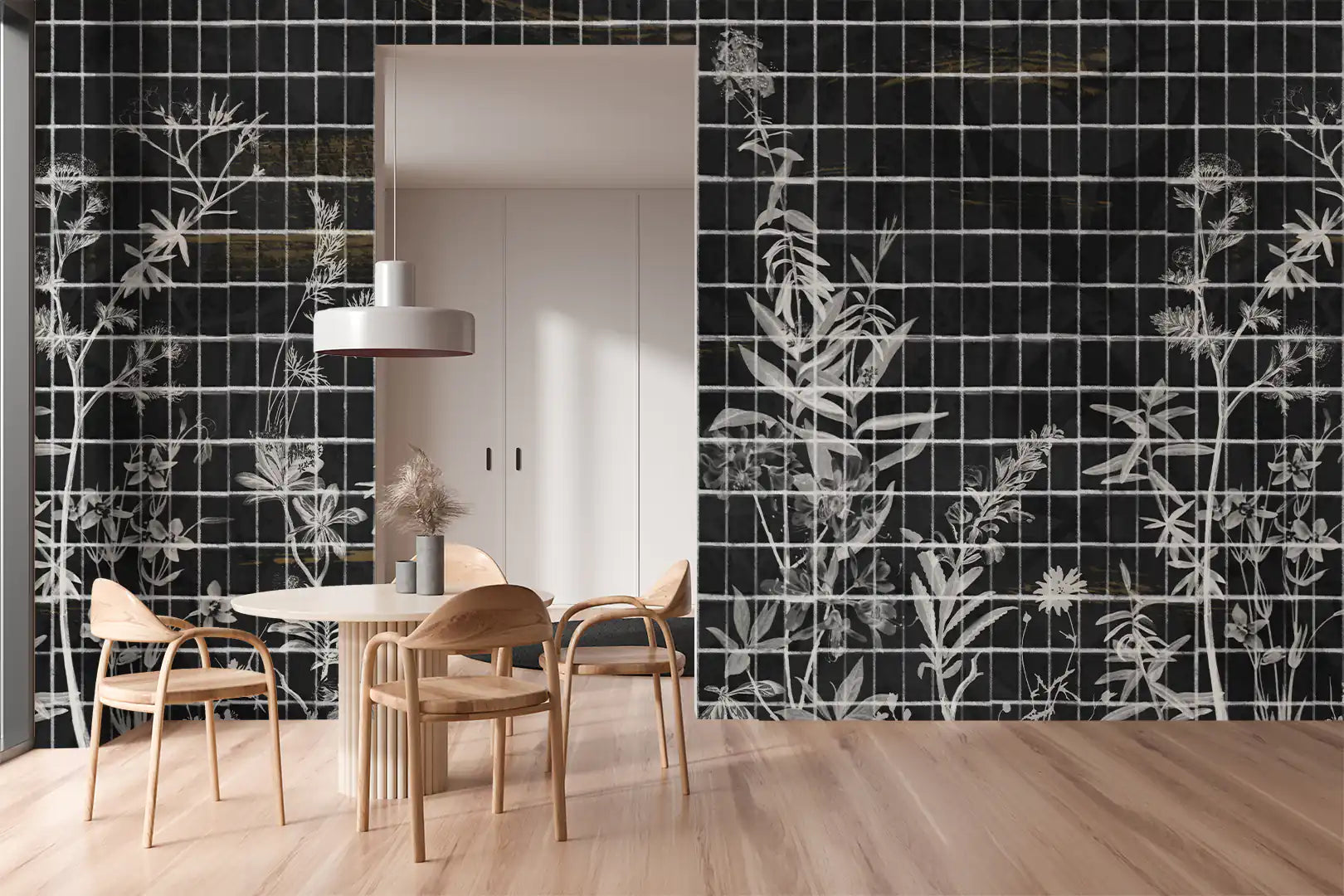 Ideal para interiores contemporáneos o escandinavos que buscan un toque de naturaleza estilizada, este papel pintado es perfecto para salas de estar, oficinas o incluso cafés y espacios comerciales que desean un fondo distintivo y calmante."Botanical Grid" ofrece una fusión intrigante de la precisión matemática con la belleza espontánea de la naturaleza. Cada planta está detalladamente representada en un estilo que recuerda a las impresiones botánicas tradicionales, pero con un toque moderno gracias al fondo estructurado de cuadrícula que añade un elemento de orden y continuidad visual.En un salón, este papel pintado puede funcionar como un mural impactante que atrae la mirada, complementando mobiliario minimalista y accesorios de tonos neutros o metálicos. En un comedor, "Botanical Grid" introduce un elemento de serenidad y sofisticación, haciendo que cada comida se sienta más conectada con el exterior, aún dentro de un marco moderno.Para una oficina en casa, el diseño proporciona un ambiente de tranquilidad y concentración, perfecto para fomentar la productividad en un entorno que es visualmente estimulante pero no abrumador. En espacios comerciales como boutiques o estudios de diseño, establece un telón de fondo creativo y elegante que puede influir positivamente en la percepción del cliente y mejorar la estética general del espacio.En dormitorios, "Botanical Grid" crea un refugio personal donde la calma y la naturaleza se entrelazan, promoviendo un ambiente de descanso y relajación. La aplicación en techos o como una pared de acento puede ampliar visualmente el espacio, ofreciendo una nueva perspectiva y profundidad a la habitación."Botanical Grid" es una elección excepcional para cualquier proyecto de decoración o interiorismo que busque un equilibrio entre lo moderno y lo natural, ofreciendo un diseño que es tanto innovador como profundamente arraigado en la serenidad de la naturaleza.