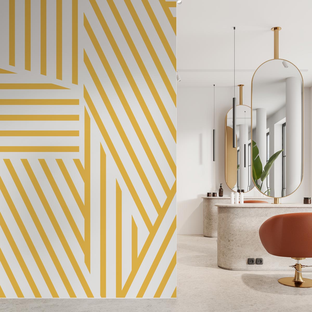 Este papel pintado se adapta perfectamente a interiores modernos, industriales o cualquier espacio que favorezca una estética minimalista y chic, donde el contraste y la forma son claves."Linear Dynamics" es una expresión artística del movimiento y la precisión en el diseño de interiores. Este mural de papel pintado presenta un complejo entrelazado de líneas blancas y negras que crean un patrón geométrico vibrante y energético. La interacción de líneas horizontales, verticales y diagonales no solo atrae la mirada, sino que también engaña al ojo con ilusiones ópticas que sugieren profundidad y movimiento, transformando cualquier pared en una pieza central de conversación.Este diseño tiene un impacto significativo en la decoración de cualquier espacio. En salones, "Linear Dynamics" puede servir como un impactante fondo para muebles simples y elegantes, destacando objetos de arte o piezas de diseño. En comedores, este patrón aporta una sensación dinámica y moderna, complementando tanto mobiliarios contemporáneos como clásicos con un toque fresco.Para oficinas en casa, el diseño estimula la creatividad y mantiene la energía del ambiente, ideal para fomentar un espacio de trabajo estimulante y productivo. En cocinas y pasillos, introduce un elemento de diseño sorprendente y audaz, que puede hacer que estos espacios a menudo olvidados cobren vida con estilo y carácter.En dormitorios, "Linear Dynamics" proporciona un fondo dramático y audaz, ideal para aquellos que desean incorporar un elemento de diseño moderno y llamativo en su espacio personal. Su aplicación en techos puede ampliar visualmente un espacio, ofreciendo un efecto sorprendente y moderno.Para entornos comerciales como boutiques, salas de exposiciones o espacios de oficina, este papel pintado establece un ambiente profesional pero vanguardista, alentando una percepción de innovación y estilo. "Linear Dynamics" es una opción excelente para cualquier proyecto de decoración o interiorismo que busque infundir un sentido de energía y modernidad en su entorno, haciendo que cada estancia se destaque por su carácter único y su diseño audaz.