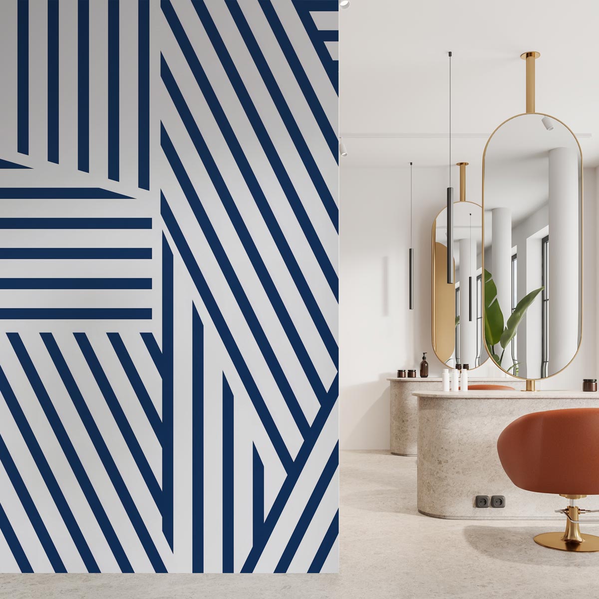 Este papel pintado se adapta perfectamente a interiores modernos, industriales o cualquier espacio que favorezca una estética minimalista y chic, donde el contraste y la forma son claves."Linear Dynamics" es una expresión artística del movimiento y la precisión en el diseño de interiores. Este mural de papel pintado presenta un complejo entrelazado de líneas blancas y negras que crean un patrón geométrico vibrante y energético. La interacción de líneas horizontales, verticales y diagonales no solo atrae la mirada, sino que también engaña al ojo con ilusiones ópticas que sugieren profundidad y movimiento, transformando cualquier pared en una pieza central de conversación.Este diseño tiene un impacto significativo en la decoración de cualquier espacio. En salones, "Linear Dynamics" puede servir como un impactante fondo para muebles simples y elegantes, destacando objetos de arte o piezas de diseño. En comedores, este patrón aporta una sensación dinámica y moderna, complementando tanto mobiliarios contemporáneos como clásicos con un toque fresco.Para oficinas en casa, el diseño estimula la creatividad y mantiene la energía del ambiente, ideal para fomentar un espacio de trabajo estimulante y productivo. En cocinas y pasillos, introduce un elemento de diseño sorprendente y audaz, que puede hacer que estos espacios a menudo olvidados cobren vida con estilo y carácter.En dormitorios, "Linear Dynamics" proporciona un fondo dramático y audaz, ideal para aquellos que desean incorporar un elemento de diseño moderno y llamativo en su espacio personal. Su aplicación en techos puede ampliar visualmente un espacio, ofreciendo un efecto sorprendente y moderno.Para entornos comerciales como boutiques, salas de exposiciones o espacios de oficina, este papel pintado establece un ambiente profesional pero vanguardista, alentando una percepción de innovación y estilo. "Linear Dynamics" es una opción excelente para cualquier proyecto de decoración o interiorismo que busque infundir un sentido de energía y modernidad en su entorno, haciendo que cada estancia se destaque por su carácter único y su diseño audaz.