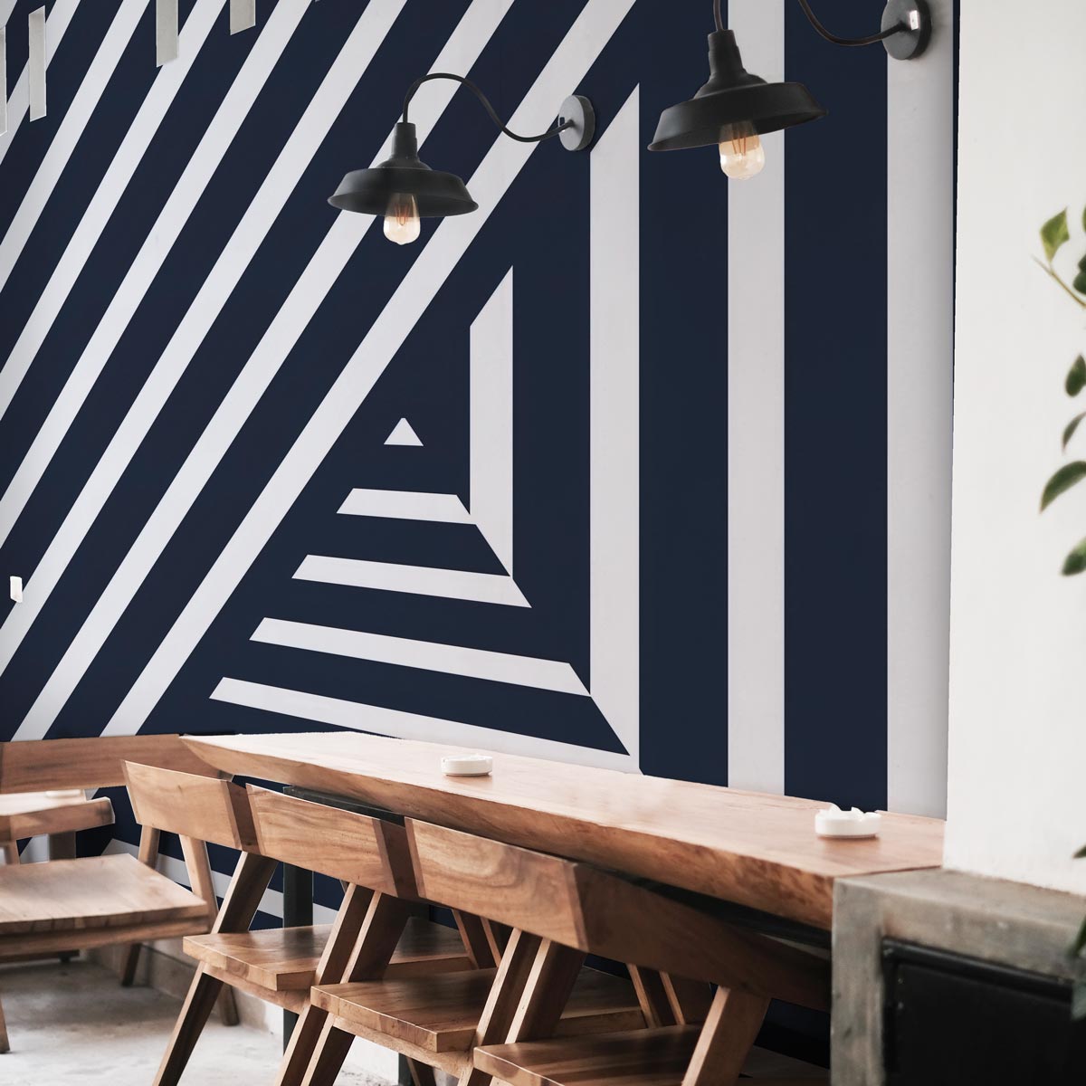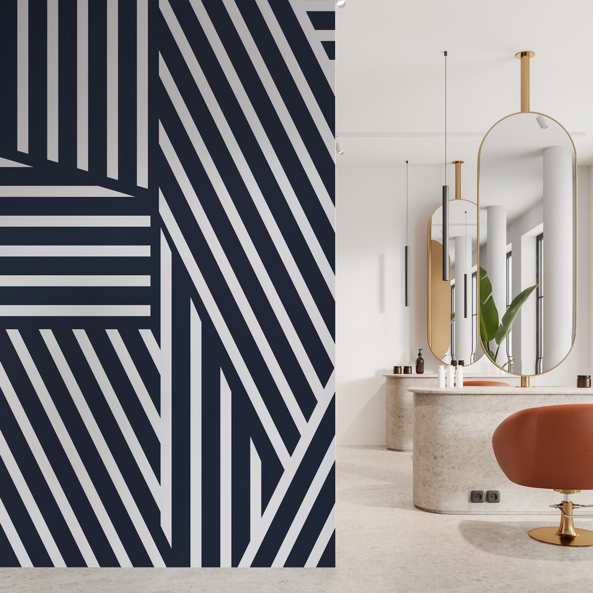 Este papel pintado se adapta perfectamente a interiores modernos, industriales o cualquier espacio que favorezca una estética minimalista y chic, donde el contraste y la forma son claves."Linear Dynamics" es una expresión artística del movimiento y la precisión en el diseño de interiores. Este mural de papel pintado presenta un complejo entrelazado de líneas blancas y negras que crean un patrón geométrico vibrante y energético. La interacción de líneas horizontales, verticales y diagonales no solo atrae la mirada, sino que también engaña al ojo con ilusiones ópticas que sugieren profundidad y movimiento, transformando cualquier pared en una pieza central de conversación.Este diseño tiene un impacto significativo en la decoración de cualquier espacio. En salones, "Linear Dynamics" puede servir como un impactante fondo para muebles simples y elegantes, destacando objetos de arte o piezas de diseño. En comedores, este patrón aporta una sensación dinámica y moderna, complementando tanto mobiliarios contemporáneos como clásicos con un toque fresco.Para oficinas en casa, el diseño estimula la creatividad y mantiene la energía del ambiente, ideal para fomentar un espacio de trabajo estimulante y productivo. En cocinas y pasillos, introduce un elemento de diseño sorprendente y audaz, que puede hacer que estos espacios a menudo olvidados cobren vida con estilo y carácter.En dormitorios, "Linear Dynamics" proporciona un fondo dramático y audaz, ideal para aquellos que desean incorporar un elemento de diseño moderno y llamativo en su espacio personal. Su aplicación en techos puede ampliar visualmente un espacio, ofreciendo un efecto sorprendente y moderno.Para entornos comerciales como boutiques, salas de exposiciones o espacios de oficina, este papel pintado establece un ambiente profesional pero vanguardista, alentando una percepción de innovación y estilo. "Linear Dynamics" es una opción excelente para cualquier proyecto de decoración o interiorismo que busque infundir un sentido de energía y modernidad en su entorno, haciendo que cada estancia se destaque por su carácter único y su diseño audaz.